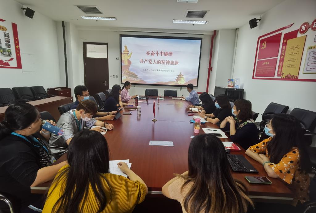首先,校研究生宣讲团于洁同学受邀做题为《在奋斗中赓续共产党人的精神血脉》的宣讲报告,支部党员纷纷表示深受教育,要在工作和生活中发扬共产党人的光荣传统、赓续红色血脉。