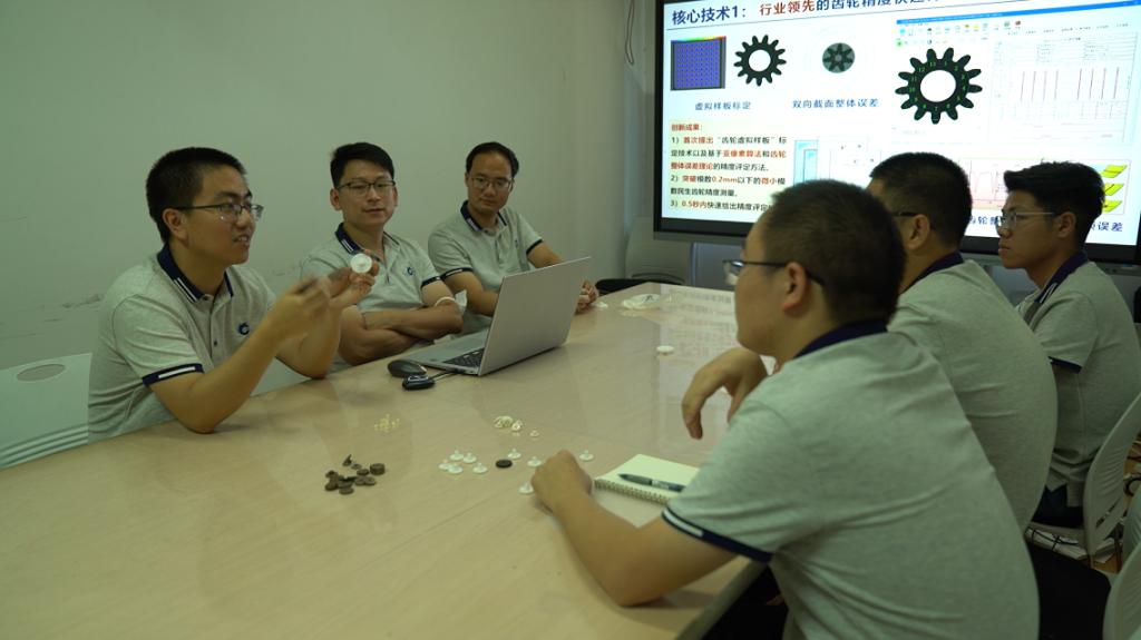 项目负责人方一鸣首先向我们介绍民生齿轮这个新概念:“民生齿轮是指在5G通信、智能家居等国计民生行业得到巨量应用的塑料齿轮和粉末冶金齿轮,是机器人关节等微型传动系统的关键零部件。随着人工智能时代的到来,民生齿轮全球市场突破千亿元!民生齿轮产线数量庞大,年产值过亿的民生齿轮企业在我国有200多家,每家企业有数个车间,每个车间一般有30~50条产线。然而现有的检测设备却不能与民生齿轮的巨大产量相匹配,无法在线全检,无法测量微小齿轮,难以识别大多数缺陷。当前只能依靠人工检测,误检率高达8%,每个产线要配备3~5人两班倒,24小时不间断筛查,还需专门配置多人巡检、复查和人工记录检测数据。尽管如此依然经常出现不合格品被客户退回的现象,给下游产业带来巨大经济损失和安全隐患。市场召唤在线全检技术。”