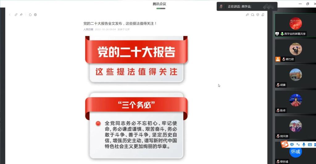 本次党日活动以“踔厉奋发 勇毅前行 做好员工的引路人——学习宣传贯彻党的二十大精神”为主题。支部书记高学金同志首先传达二十大报告精神,并传达公司学习贯彻党的二十大精神大会的会议精神。随后,与会同志逐一分享党的二十大精神的学习情况及学习感想。