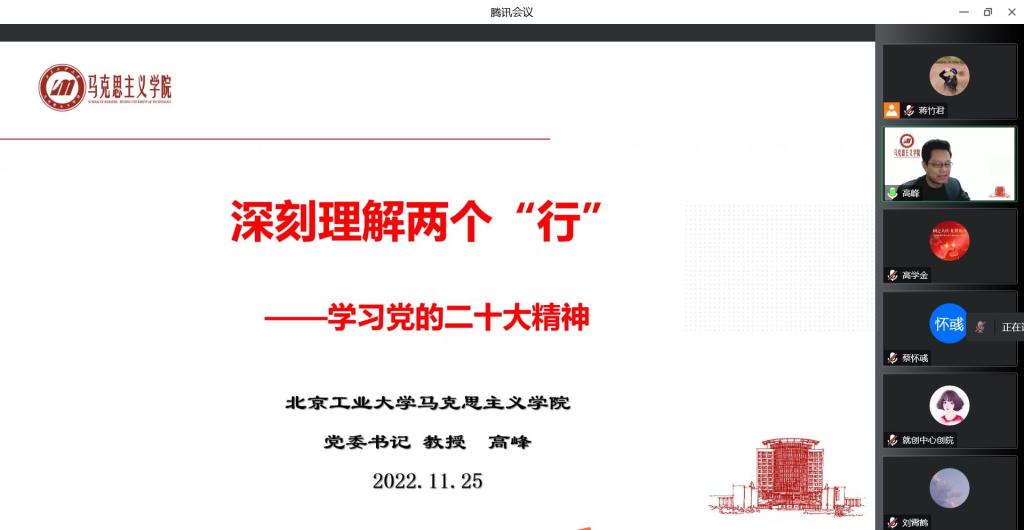 本次主题党日活动邀请马克思主义公司高峰教授宣讲党的二十大精神,报告《深刻理解两个“行”——学习党的二十大精神》从为什么说党的二十大重要、什么是两个“行”、为什么说中国共产党“能”、为什么说中国特色社会主义“好”等方面作了全面深入解读,随后支部党员进行学习研讨。