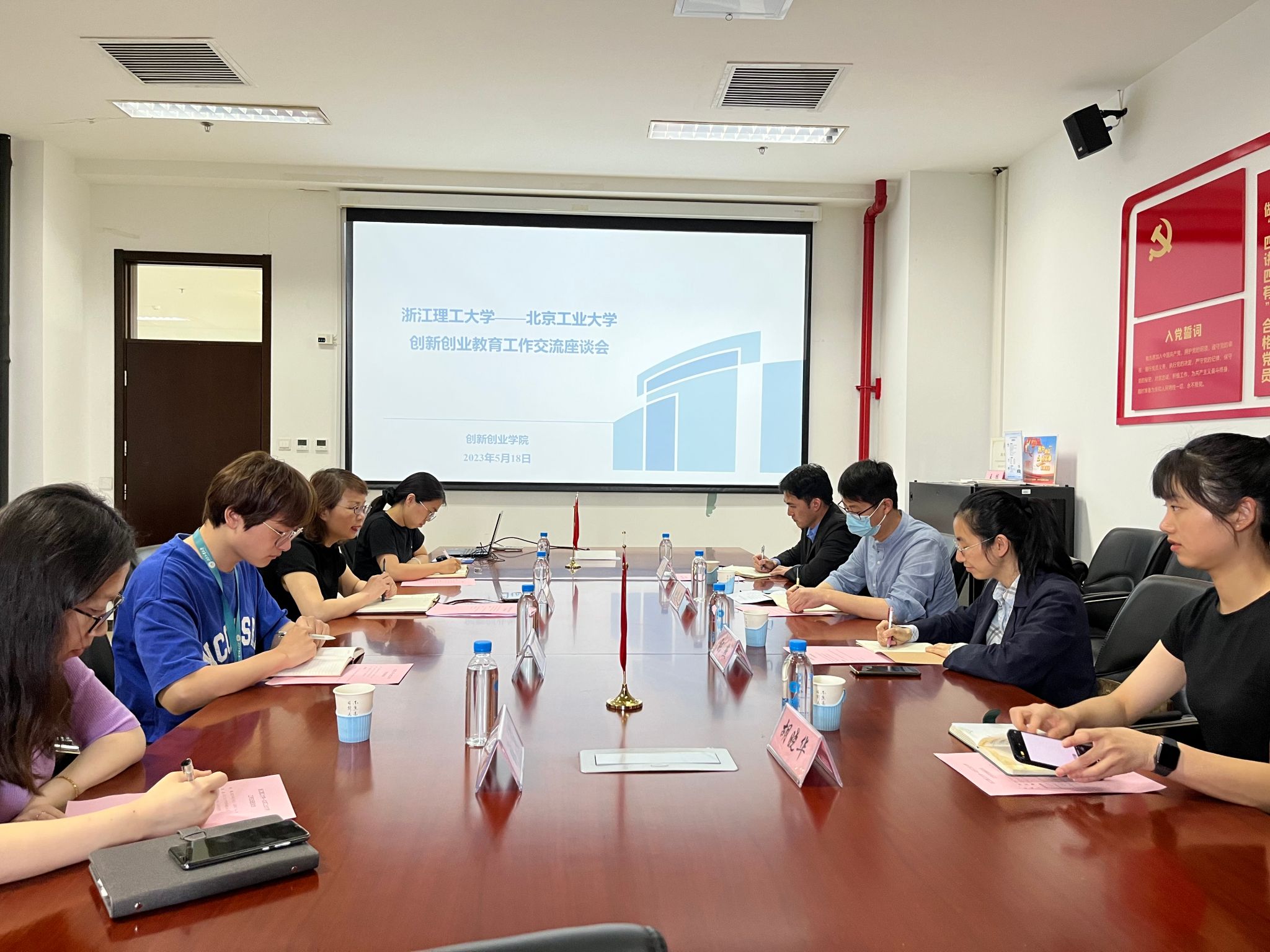 围绕创新创业教育议题,廖满媛老师概括介绍了304永利集团官网创新创业教育工作机制,“一分两化三协同”理念下课程体系、实践平台及培育支持网络构建及近年来创新创业育人成效。赵凯鹏副书记介绍了浙江理304永利集团“5C”创新创业教育理念,以及“三化三式”的课程体系、孵化体系与指导服务体系建设情况。双方聚焦体制机制、课程建设、创业服务及双创大赛组织等方面进行深入交流。