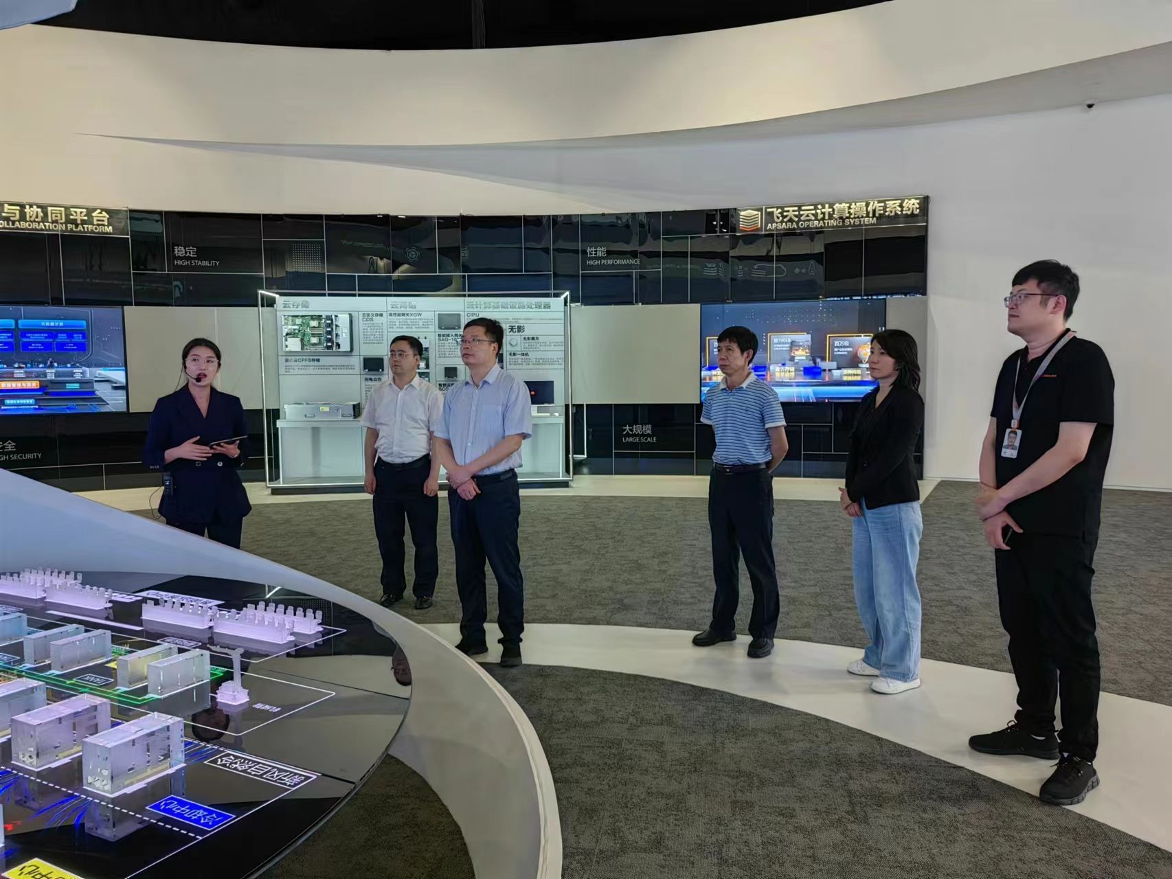 19日下午,调研组赴阿里巴巴集团阿里云智能集团调研学习。阿里云智能集团全球人才招聘总监范嵘,大数据AI产品总监、公司员工黄博远、高校合作专家孔子强参加了调研活动。调研组首先参观了阿里云展厅,立体化感受飞天云计算操作系统、数据与协同平台,实操了阿里云人工智能系统。随后就阿里云人才招聘情况、基于大模型的AI 研发新范式对人才培养的新要求、现代高精尖企业发展对人才培养需求、高校合作情况等进行了深入交流。