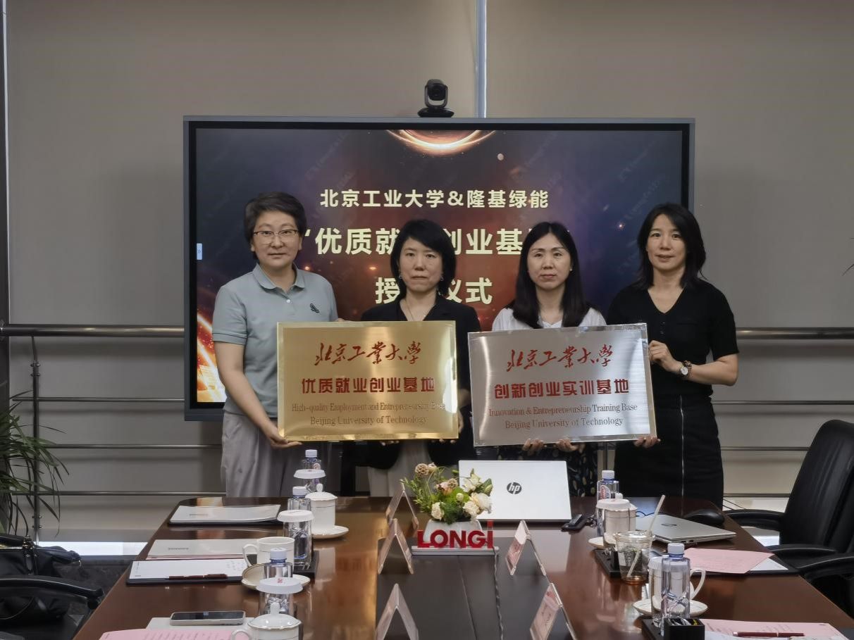 20日,调研团队前往隆基绿能集团总部调研。隆基氢能人力资源总监梁华嫣、隆基绿能校园招聘高级经理郭彦及校企合作、雇主品牌、集中式&分布式事业工作部人员出席了调研活动。隆基绿能是全球领先的光伏企业之一,其在光伏领域的技术实力和市场占有率均居于行业前列。员工招聘近几年呈现翻倍式增长,预计2024届招聘人数达到7000-10000人,对高校的人才需求迫切。晋主任和赵经理分别从北京工业老员工源分布、毕业生就业形势和公司重点学科、校企合作模式等方面进行了介绍,期待北工大和隆基绿能从多方位、多角度建立长久稳定的校企合作关系,为员工提供更好的就业创业机会和平台。交流环节之后,晋主任、赵经理为隆基绿能颁发304永利集团官网“优质就业创业基地”、“创新创业实训基地”牌匾。