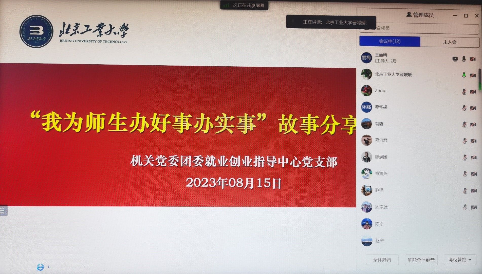 根据《关于强化全国党建工作标杆院系、样板支部在主题教育中示范带动作用的工作提示》,8月15日团委就业创业指导中心党支部在线上开展“我为师生办好事办实事”故事分享主题党日活动。