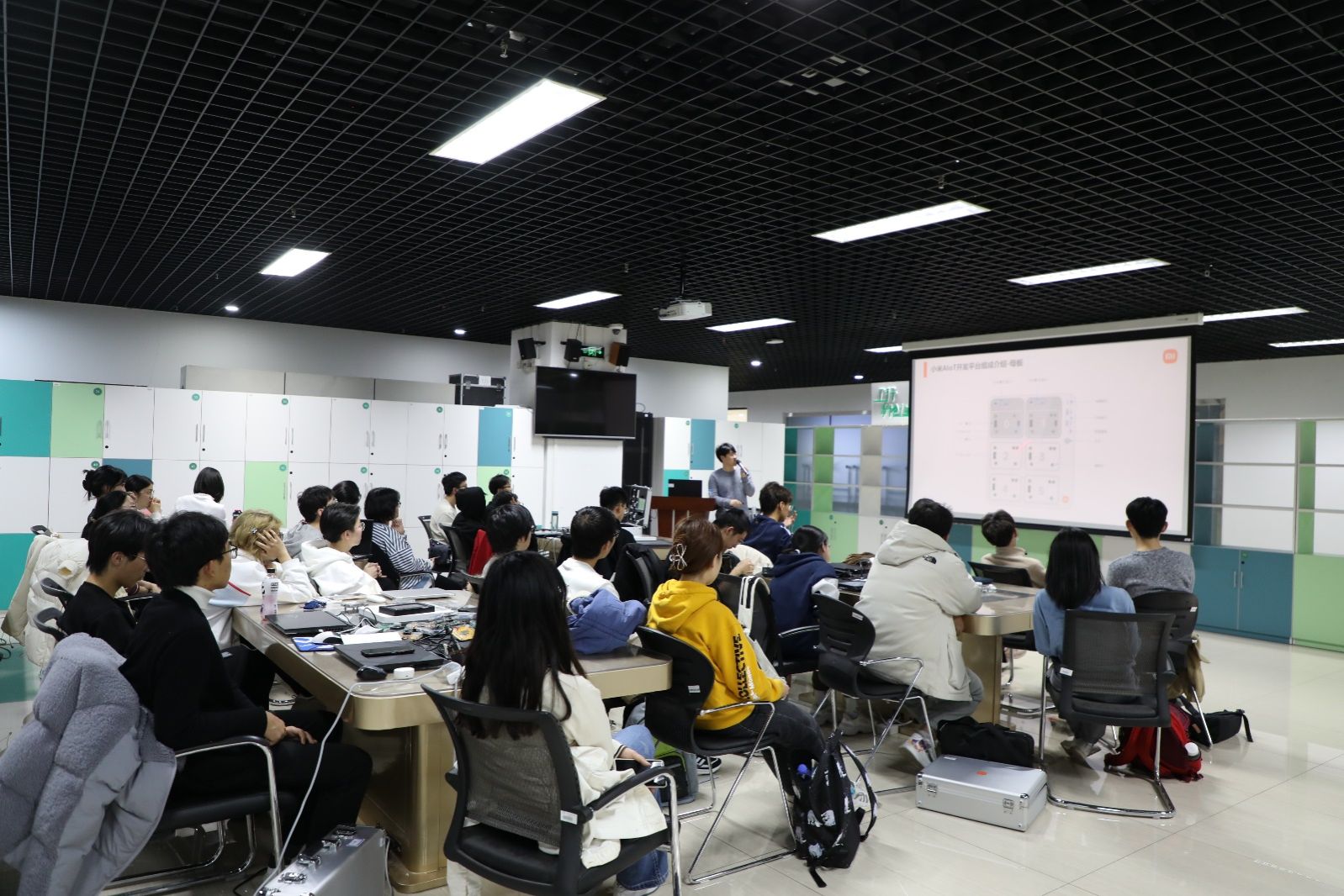 小米集团人力资源部高校关系经理为大家讲解企业文化、公司战略及实习就业机会,并与同学们现场交流,为大家解答疑惑。