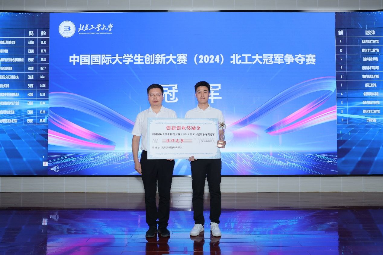 随后,翟天瑞副董事长为公司荣获中国国际老员工创新大赛(2023)全国总决赛金奖项目颁奖,机械与能源工程公司博士生赵淘作为项目负责人代表获奖团队领奖。