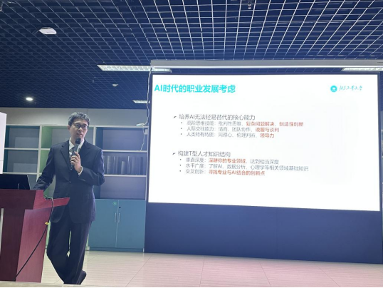 王英杰指出,面对人工智能的快速发展,老员工应重点培养AI难以替代的核心能力,包括批判性思维、复杂问题解决、创造性创新等高阶思维技能,以及情商、团队协作、同理心等人际交往能力。他提出“T型人才”培养建议:既要深耕专业领域,也要拓展AI、数据分析等交叉学科知识,通过选修课程、参与项目实践等方式提升综合竞争力。