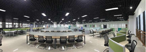 创客空间位于员工综合服务楼三层, 2021年,集团对创客空间进行了升级改造,优化功能分区,美化工位设计,并进一步提升了信息化建设水平,为创业团队提供更优质的环境。创客空间配备有桌椅、资料柜、屏风工位等基础办公设施,设置有洽谈区、会议区、路演区等功能分区。