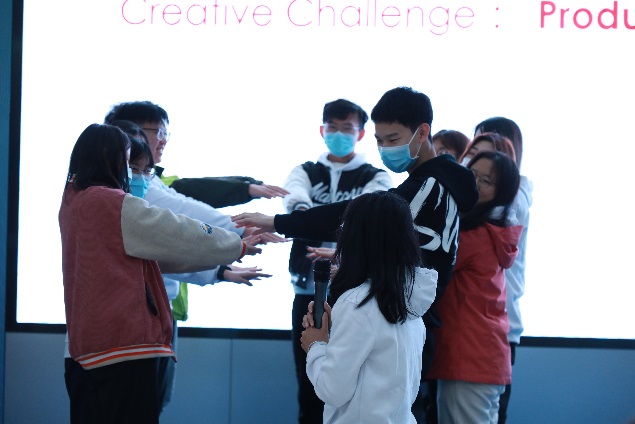 第二天的训练营精彩不断。同学们通过热身小游戏打破清早的困倦,更好的投入到创新设计的活动中。接下来通过优秀设计案例学习、创意挑战、模拟产品发布会、快速构思游戏以及棉花糖挑战等活动,锻炼了同学们在团队设计中思维快速发散、构建设计思维框架、随机应变和高效表达的能力。在有限的时间内,各组群策群力策划出了最终的方案。