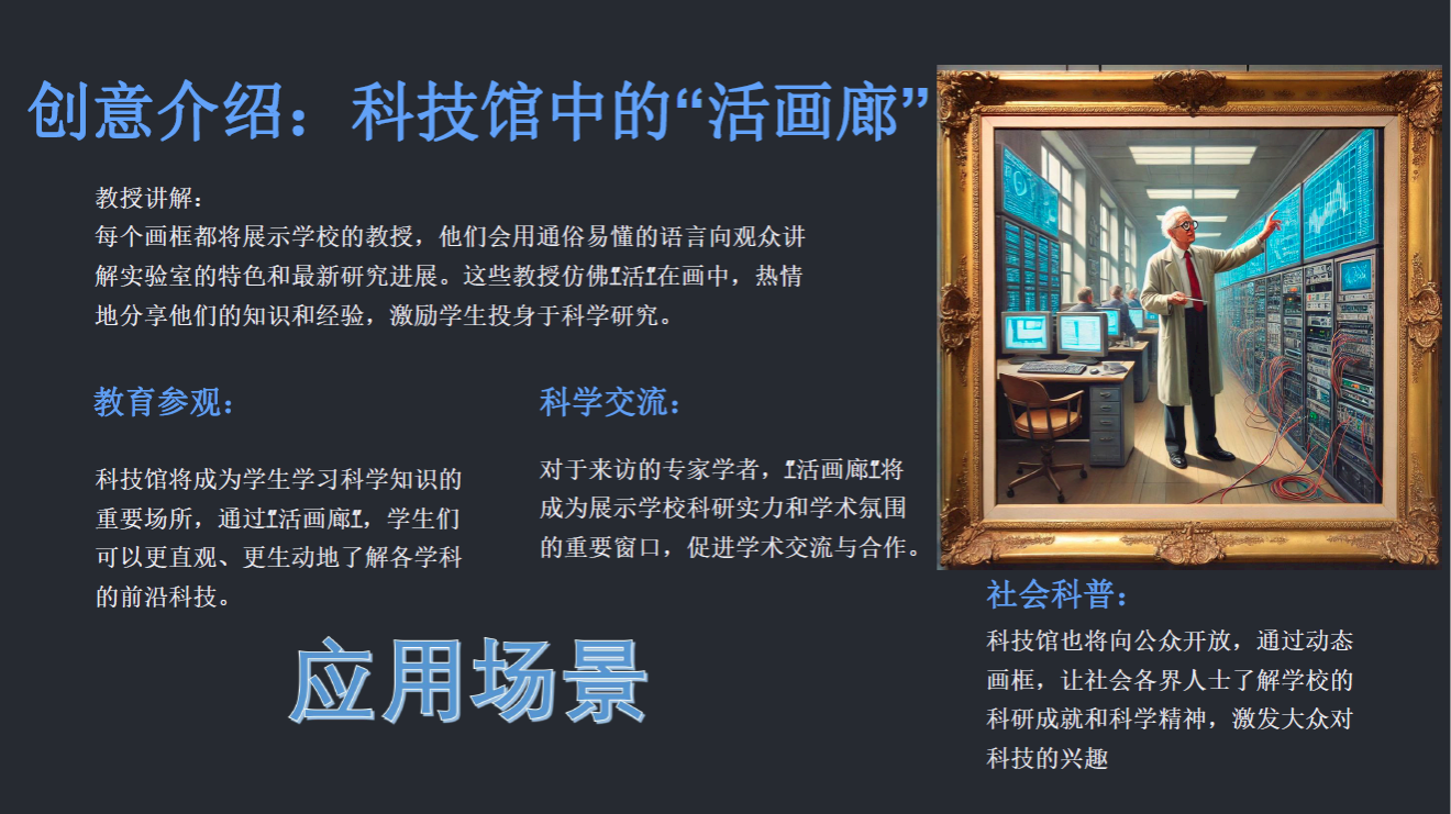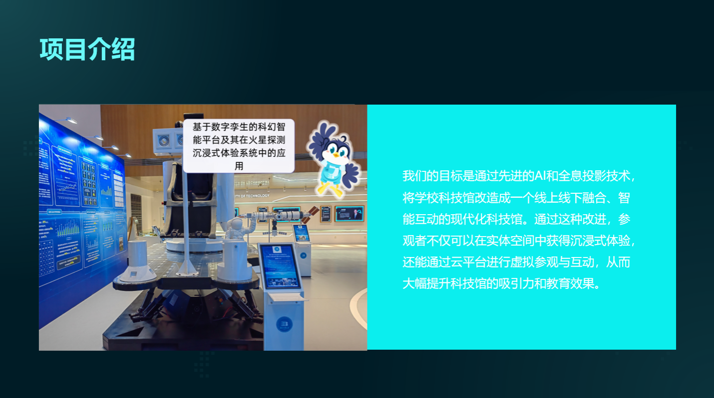 在任务实践环节,同学们以 “如果让你来为我们所在的科技馆新增一个人工智能应用项目,你会怎么做?”为题,探索以科技馆为应用场景的人工智能项目实践。通过小组头脑风暴,确定各自的主题并进行初步策划,奇思与创造的碰撞让同学们对人工智能产品的创意来源和模型设计有了更深的认知。在最后的项目展示环节,每个小组通过路演汇报展示成果,老师针对同学的设想和模型设计进行了点评,指出了相关的问题,并评选出了优胜小组。