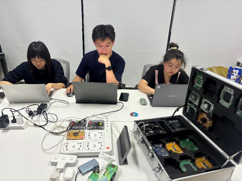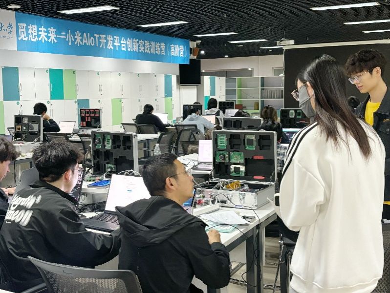 小米资深工程师与校内导师联合授课,开启硬核课程。小米集团技术委员会软件研发工程师姜涛以三次线下授课为同学们系统讲授小米AIoT开发平台执行子板使用、多子板通讯组网以及语音识别板端部署,将企业开发经验转化为可落地的教学内容。公司马仲海副教授全程指导项目实践,从选题规划到技术答疑,助力学员将理论知识转化为创新动能。
