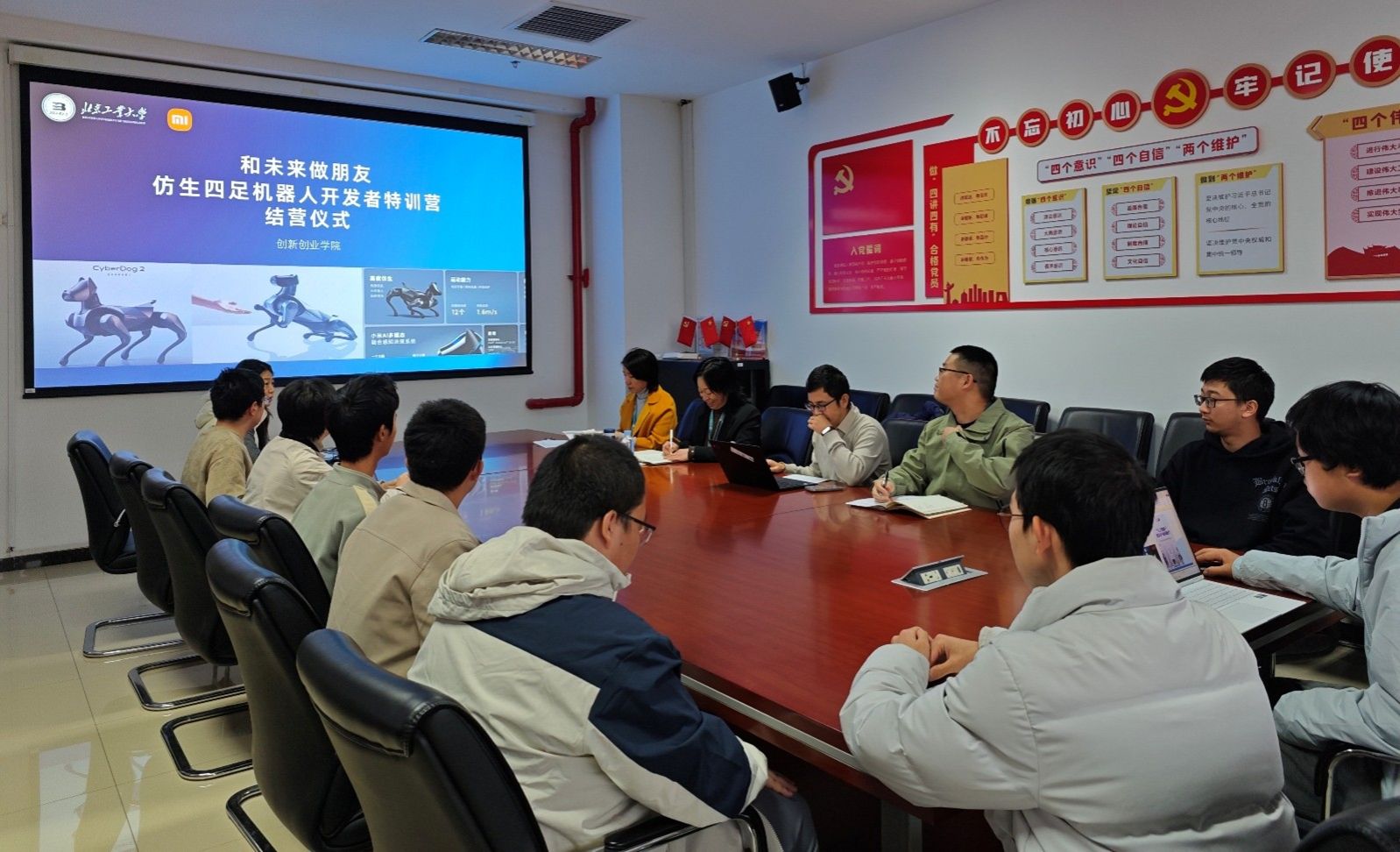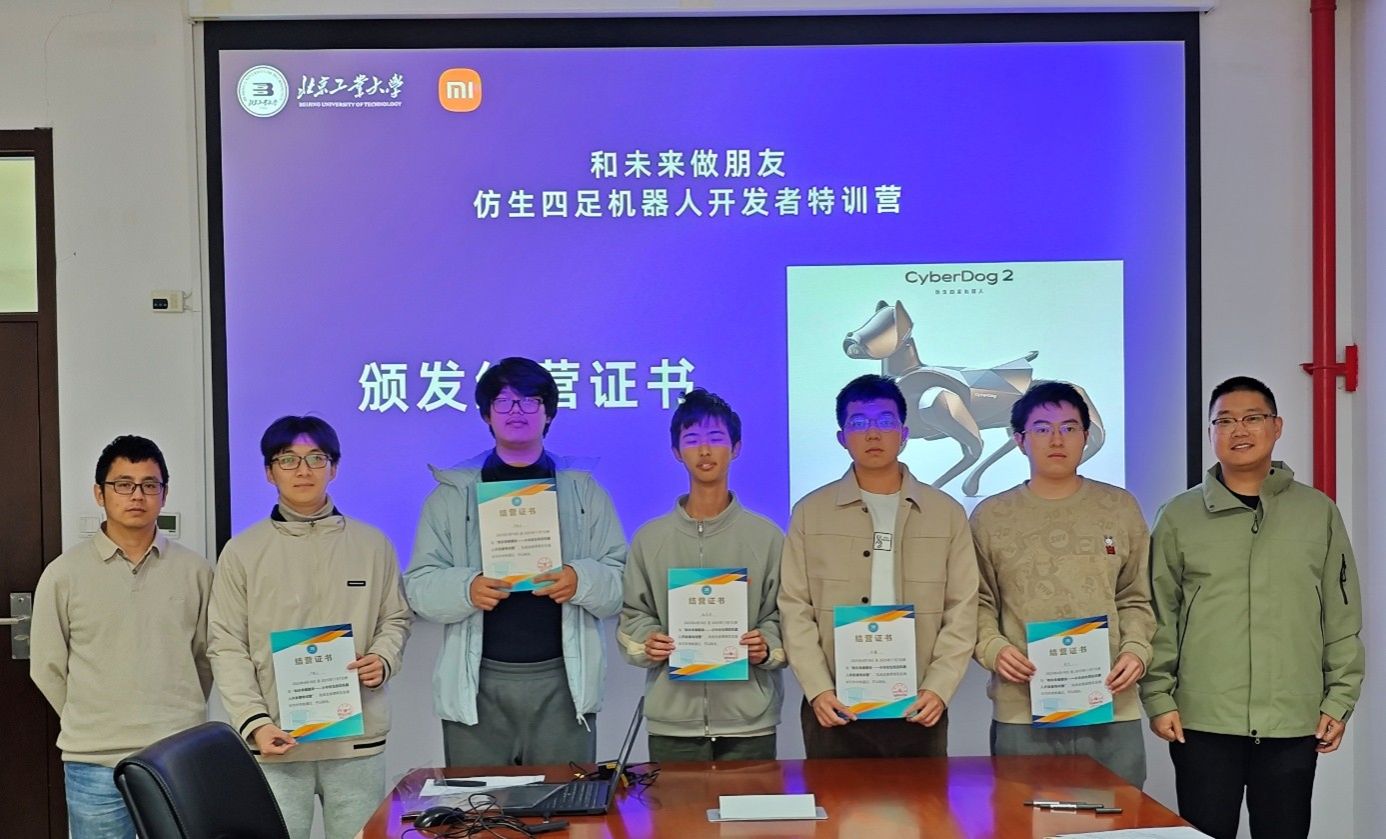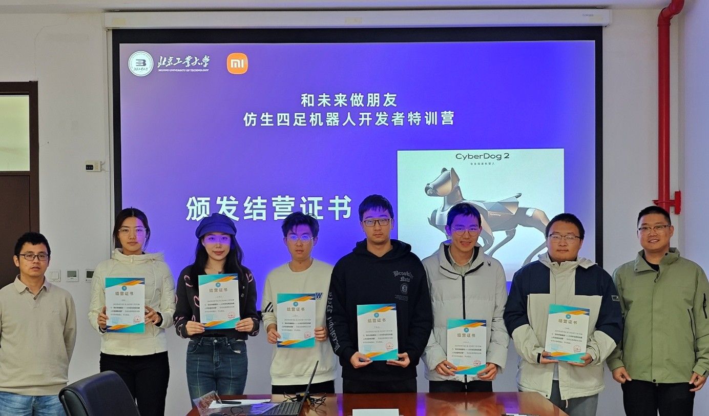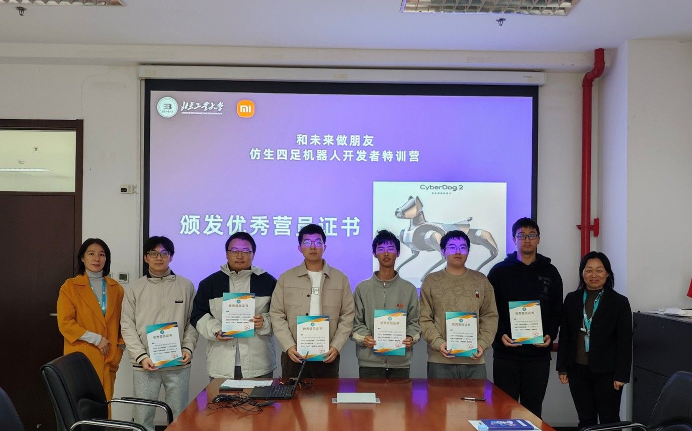 为全面提升员工创新创业及探索新科技能力,深化校企人才联合培养路径,304永利集团联合小米集团于5月至11月举办“和未来做朋友—小米四足仿生机器人开发者特训营”,此次特训营是基于北工大-小米创新创业工作室,在机器人主题创新实践育人领域的首次尝试。11月7日,开发者特训营顺利结营,创院常务副经理王丽梅、副经理赵艳、校内指导教师邓恒、马仲海出席本次结营汇报活动。
